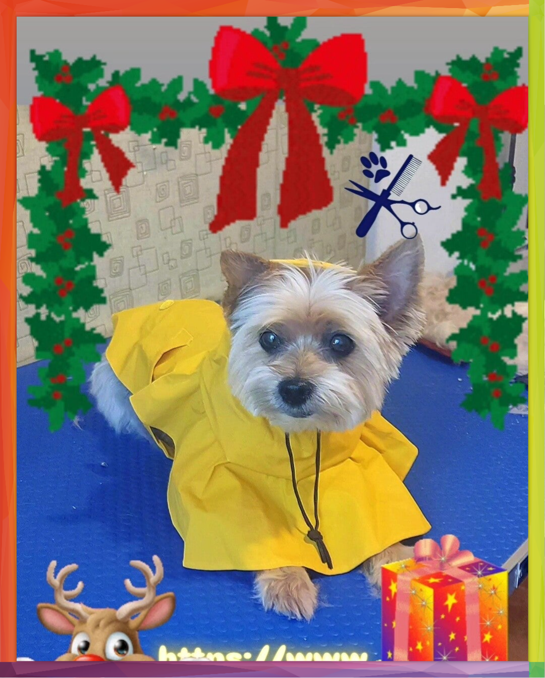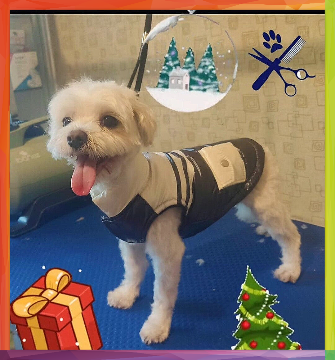 Tarde de sábado lluvioso con Casilda🌧🤗, ésta cachorrita adorable que se va así de guapa y reluciente!🐕✨y además de estrenar look, estrena también su impermeable de regalo!! 🎁🎄